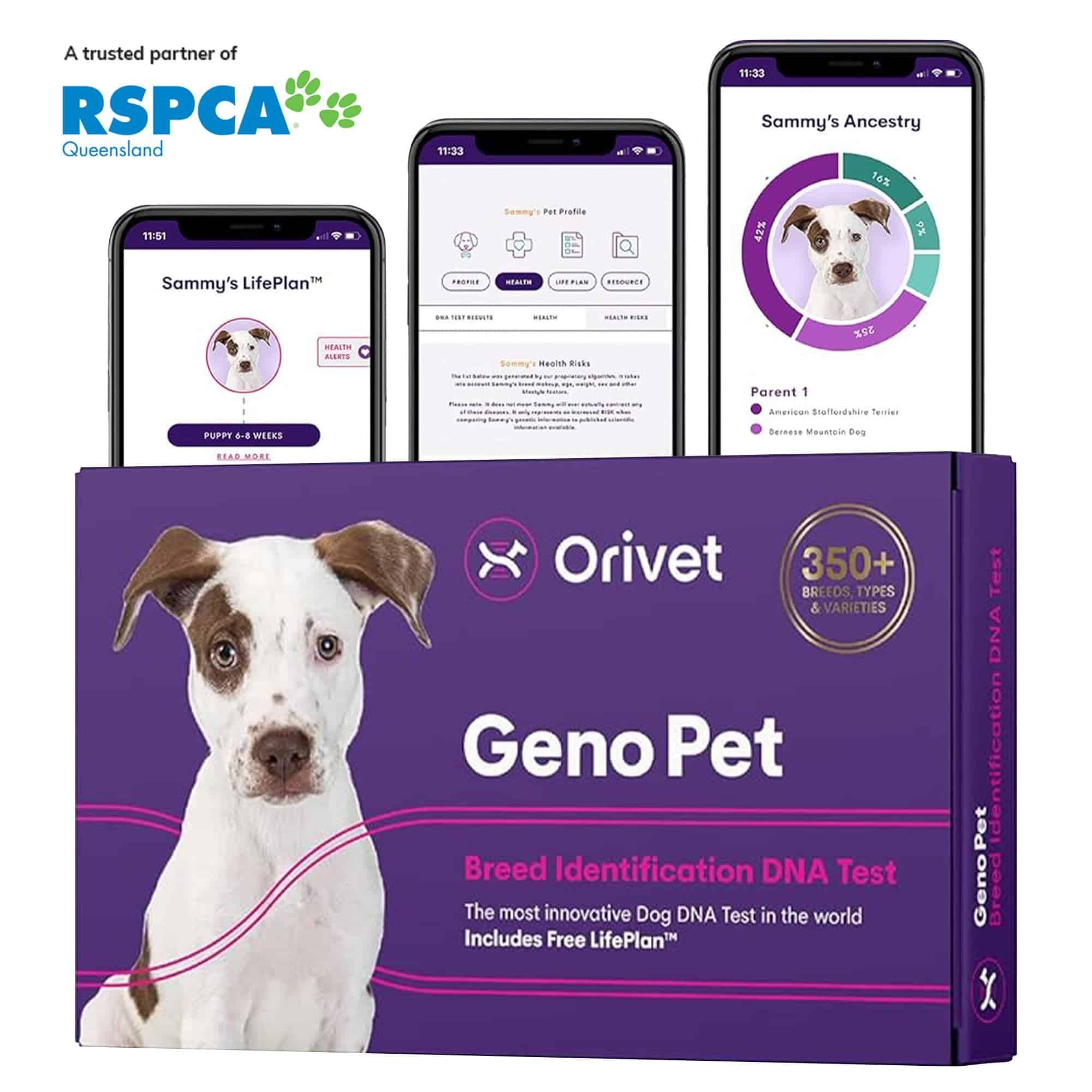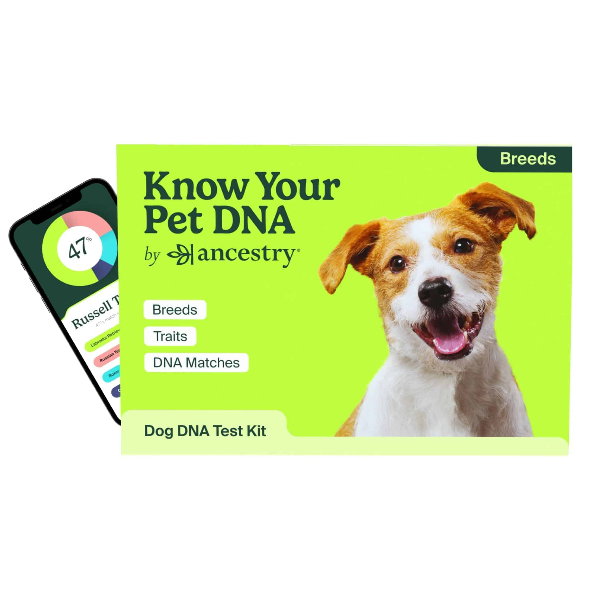 - Tests for over 350 dog breeds with percentage breakdowns