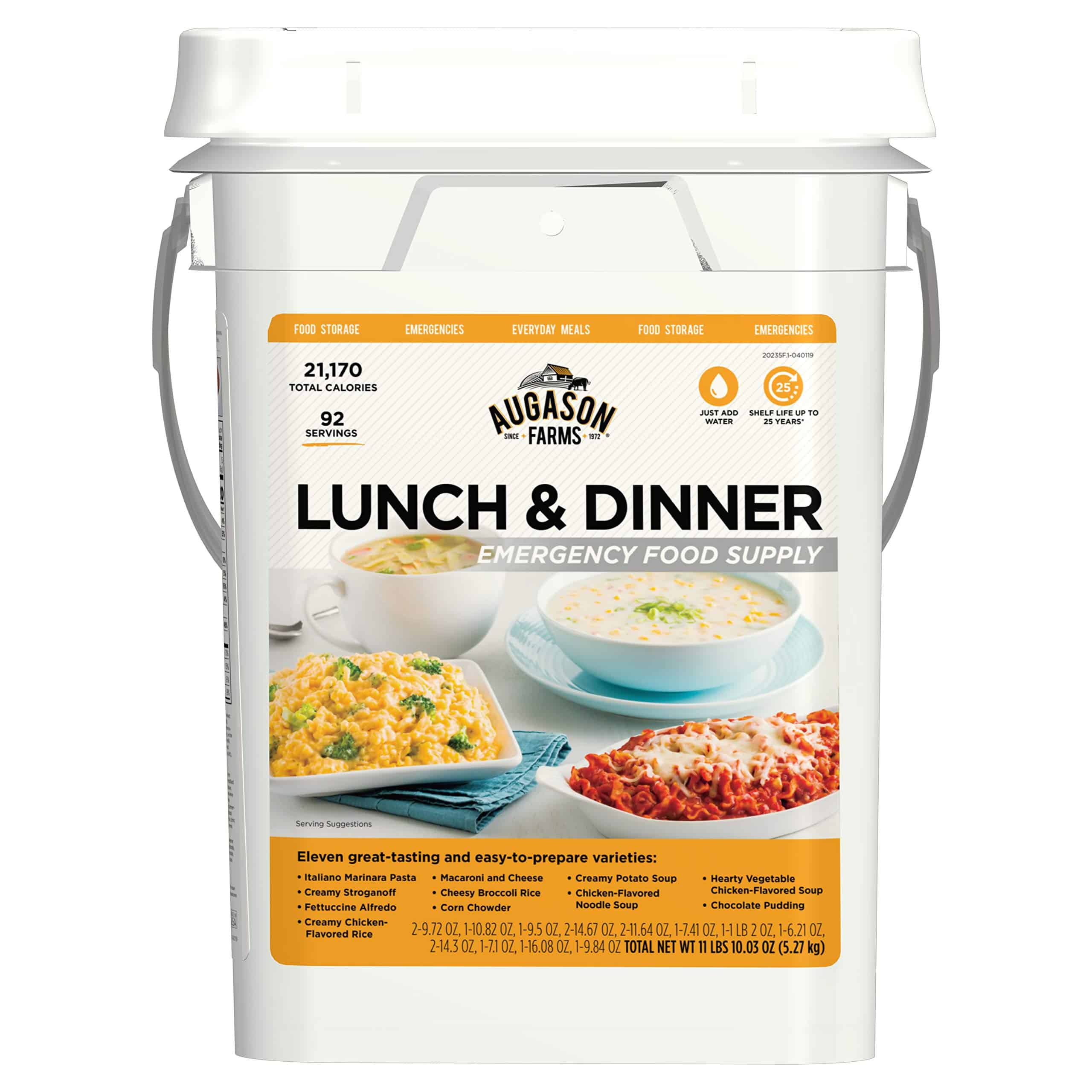 This winter, we tested several emergency meal kits and were genuinely impressed with Ready Hour’s offerings. The bucket contains 22 resealable pouches with a total of 120 servings – enough to provide substantial emergency nutrition. When we prepared the Creamy Alfredo pasta (which seems to be the most common in the bucket), the texture and flavor were much better than expected for shelf-stable food.
