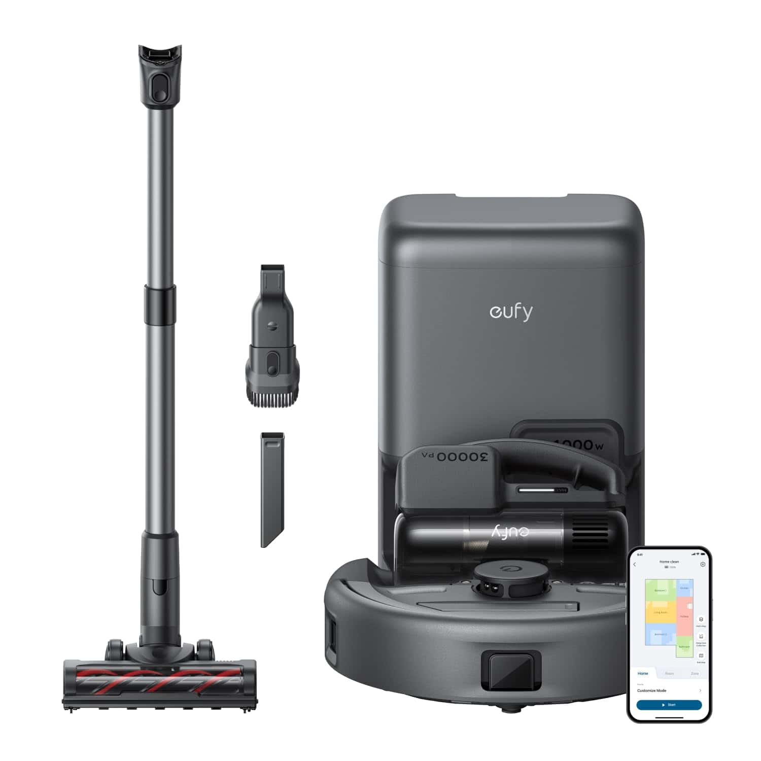 - Impressive 30,000 Pa suction power demolishes dirt and debris