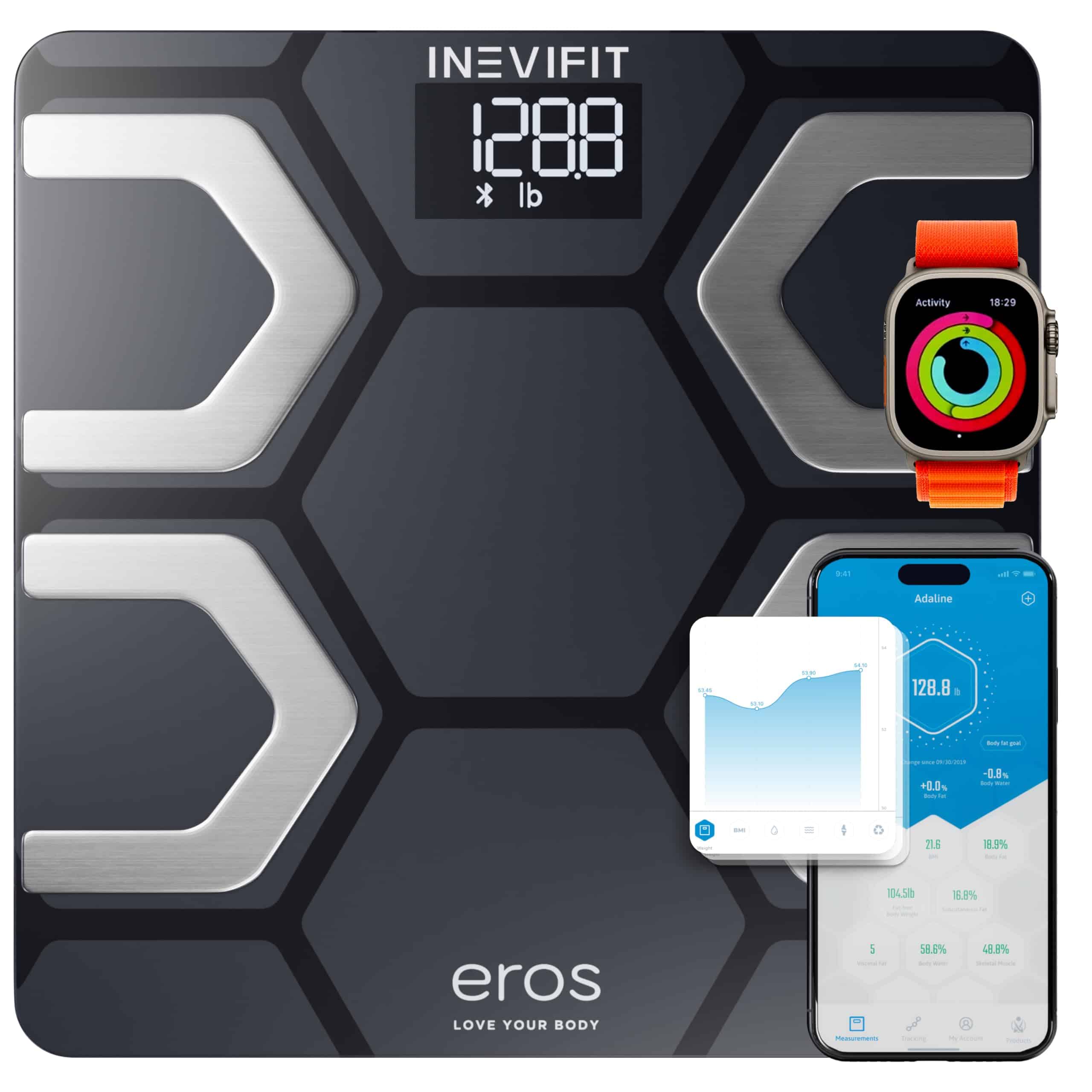 We’ve been testing the INEVIFIT EROS for several weeks, and it quickly became our favorite smart scale. The setup process was straightforward – just download the Eros app, pop in the included AAA batteries, and follow the connection instructions. The scale’s sleek black design with a bright LED display complements any bathroom decor while being practical for daily use.