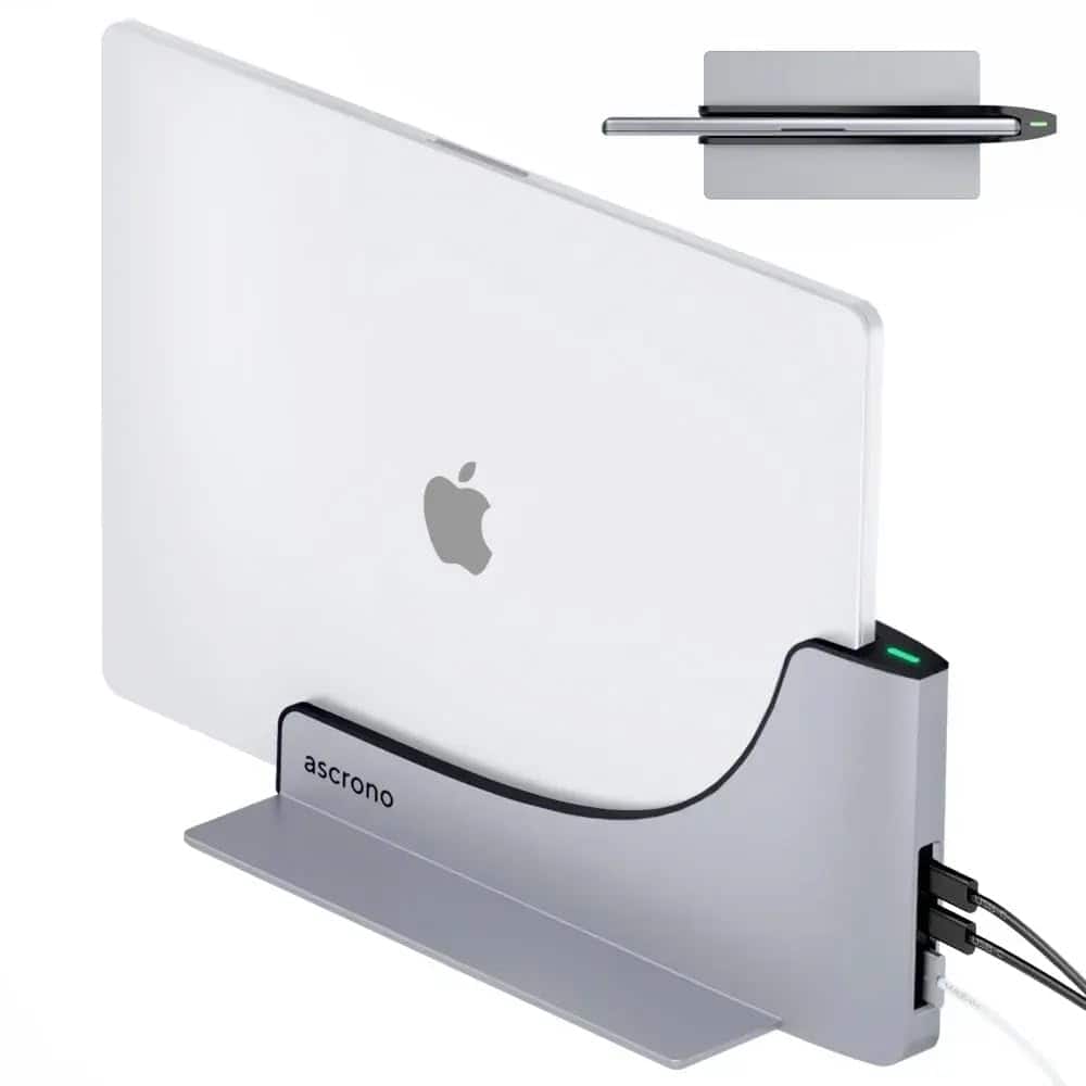 The Ascrono Vertical Docking Station transforms any M2 or M3 MacBook Air into a powerful desktop setup with its sleek design and reliable connectivity.