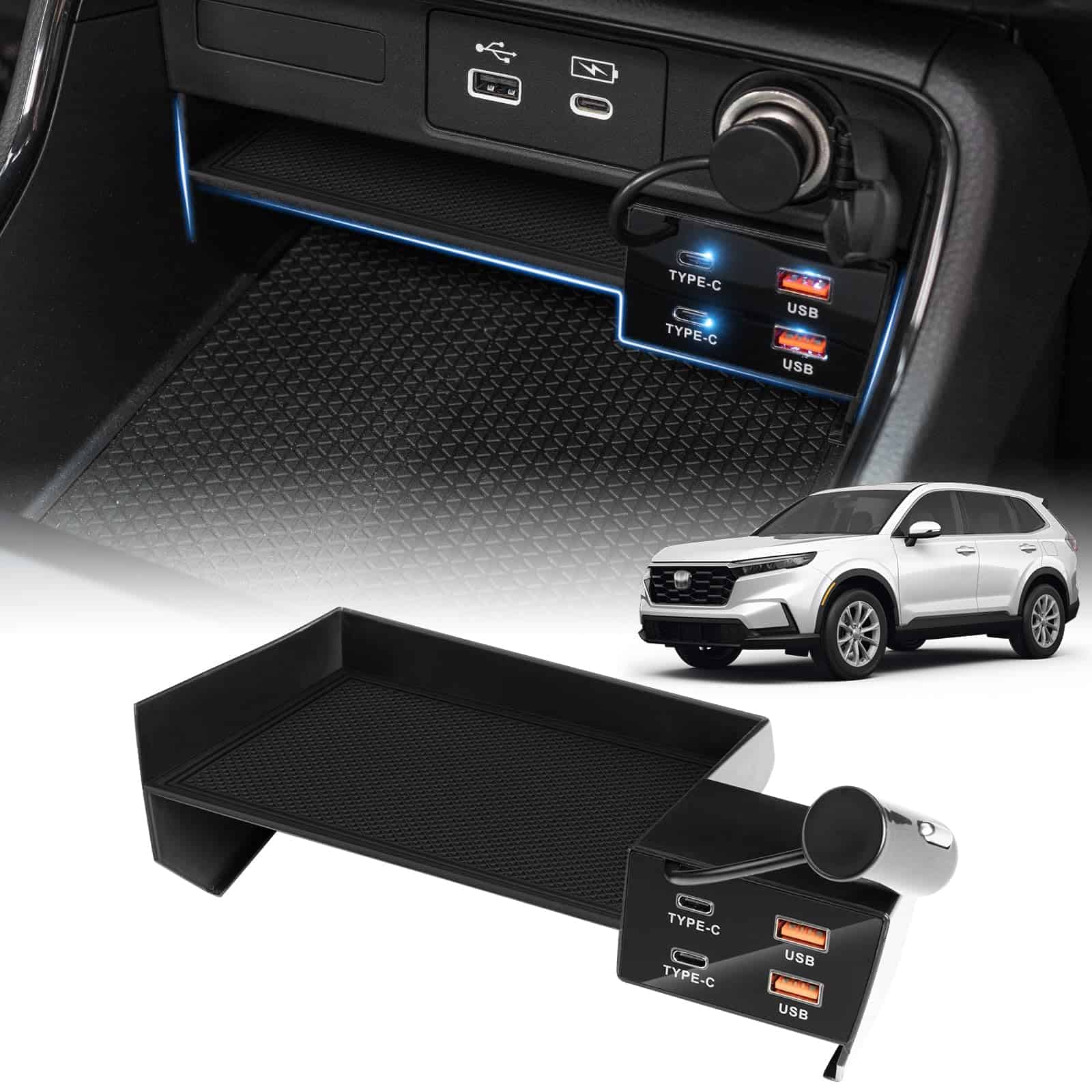 This compact console charging hub for the 2023-2025 Honda CR-V provides essential multi-device charging capabilities with a perfect fit design.