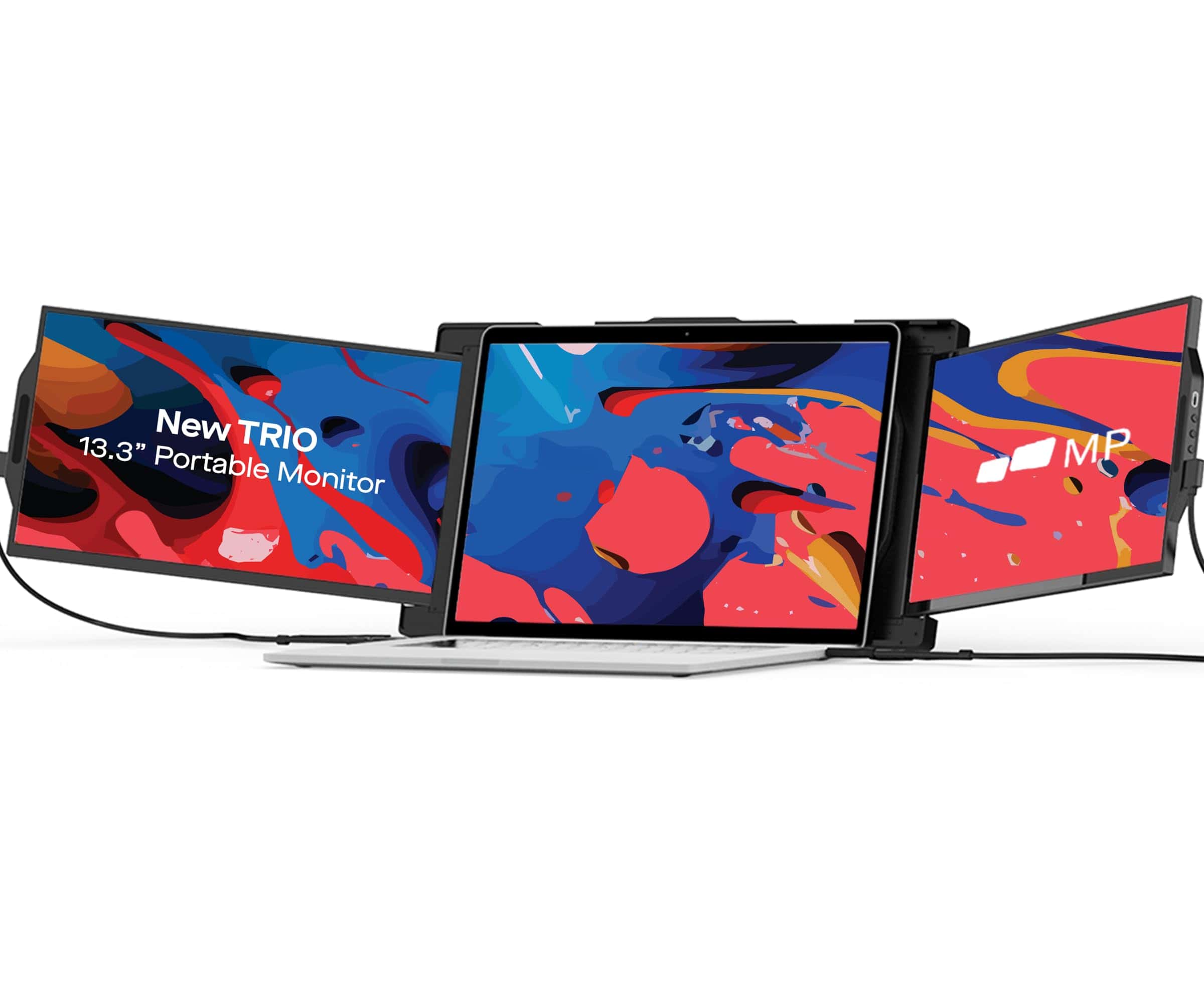 The Trio 13.3″ portable monitor system transforms any laptop into a productivity powerhouse with its sleek triple-screen setup that’s perfect for mobile professionals.