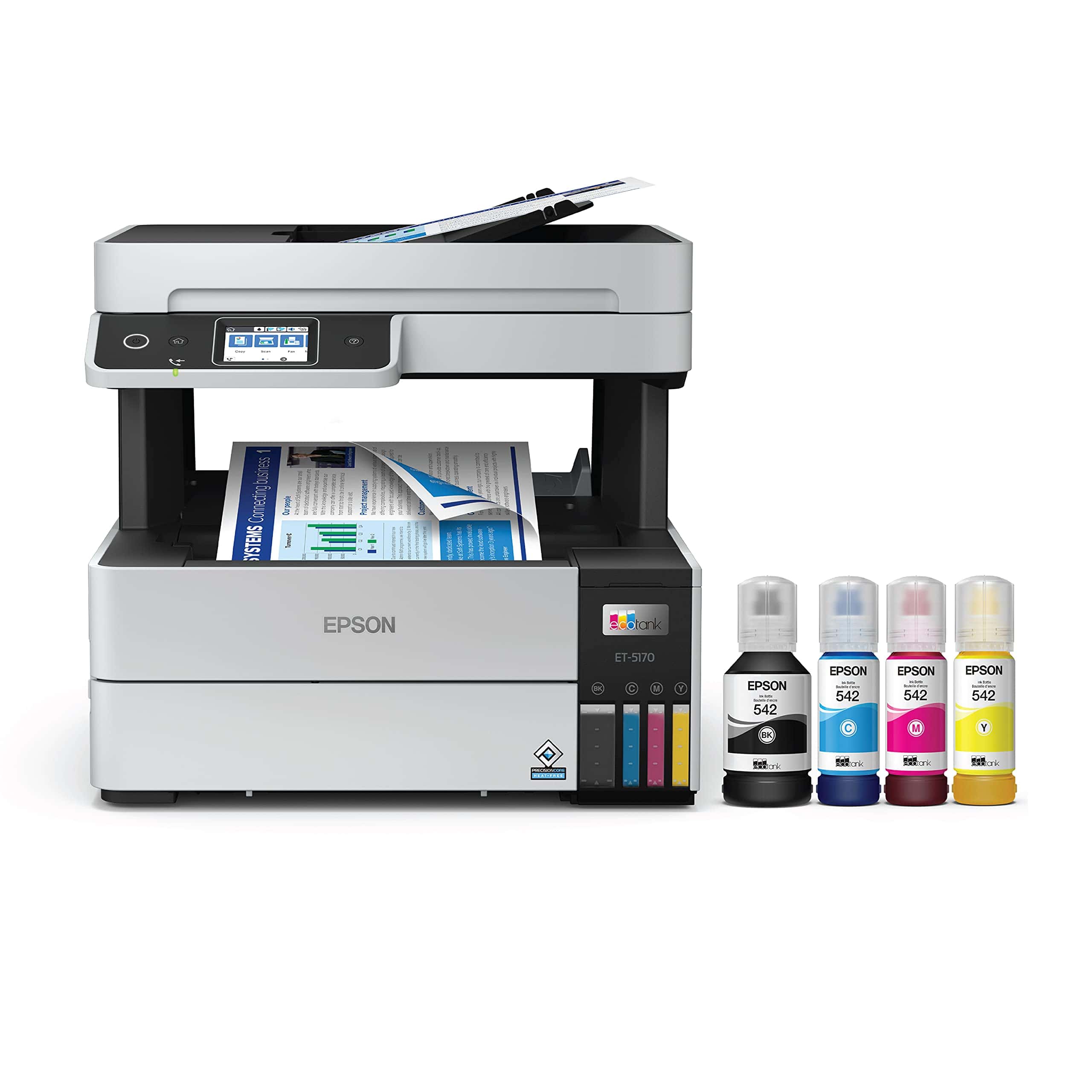 The ET-5170 has transformed our office printing experience. After using it for several months, we’ve noticed significant savings on our ink costs. The printer comes with enough ink to print thousands of pages right out of the box, and replacement bottles are much more affordable than traditional cartridges.