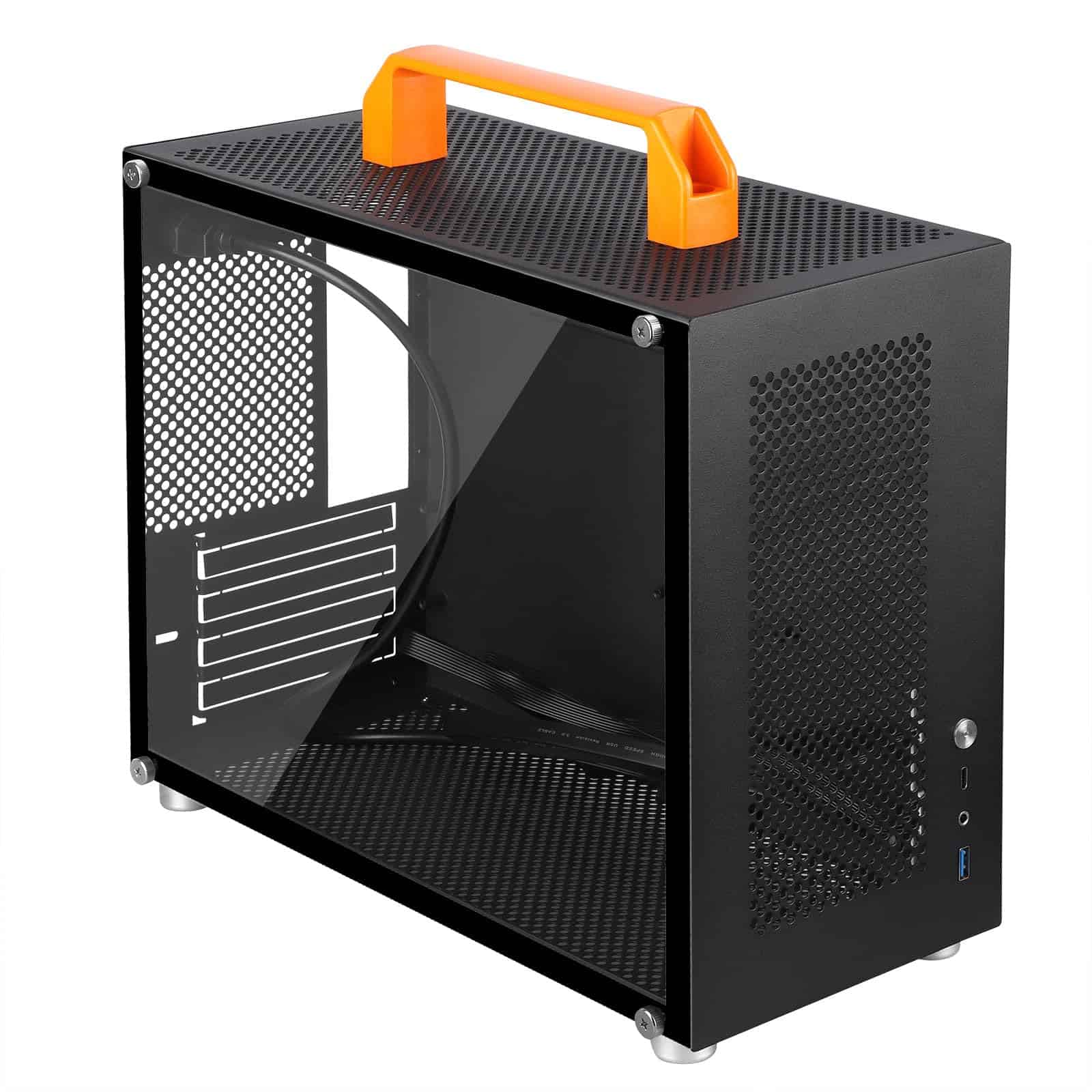 We recently tested the T.F.SKYWINDINTL X2-B case for a compact build, and it’s an interesting option for 2026. The black steel chassis with orange handle gives it a distinctive look that stands out from other mini cases. At 1.2mm thickness, the steel feels substantial – definitely not flimsy like some budget options.