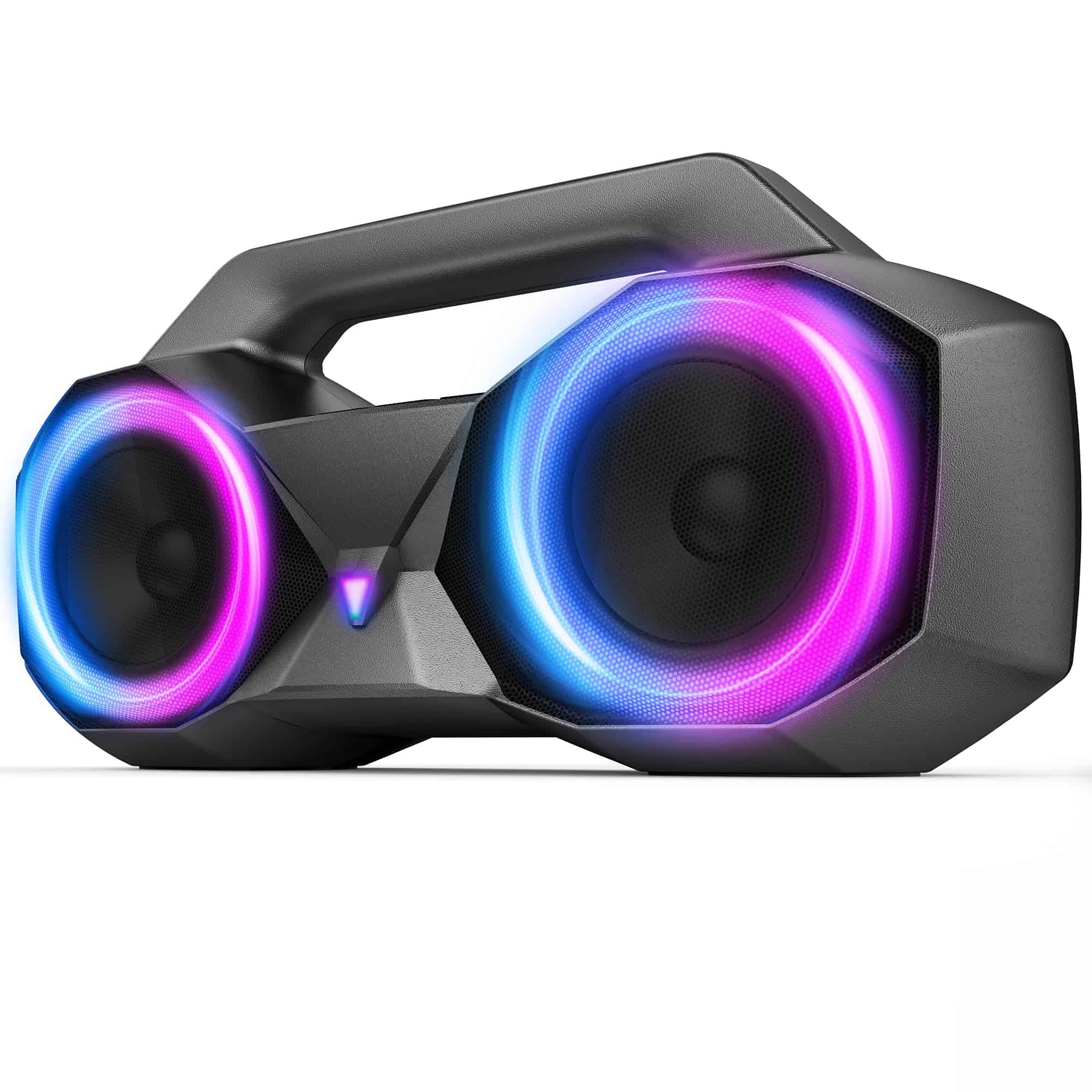 The W-KING D9-1 is the best loud Bluetooth speaker for outdoor gatherings with its impressive 100W peak power, exceptional battery life, and rugged waterproof design.