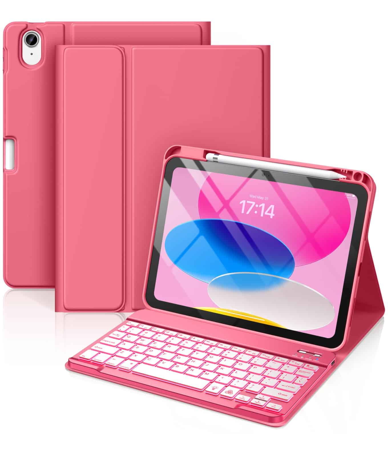 We recently tested the Hamile keyboard case with our iPad 10th Generation, and it’s an impressive accessory for the price. The case fits perfectly with the 10.9-inch model (A2696/A2757/A2777), providing full protection while adding laptop-like functionality. The pink version we tried has a premium look with its smooth PU leather exterior.